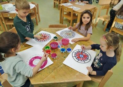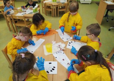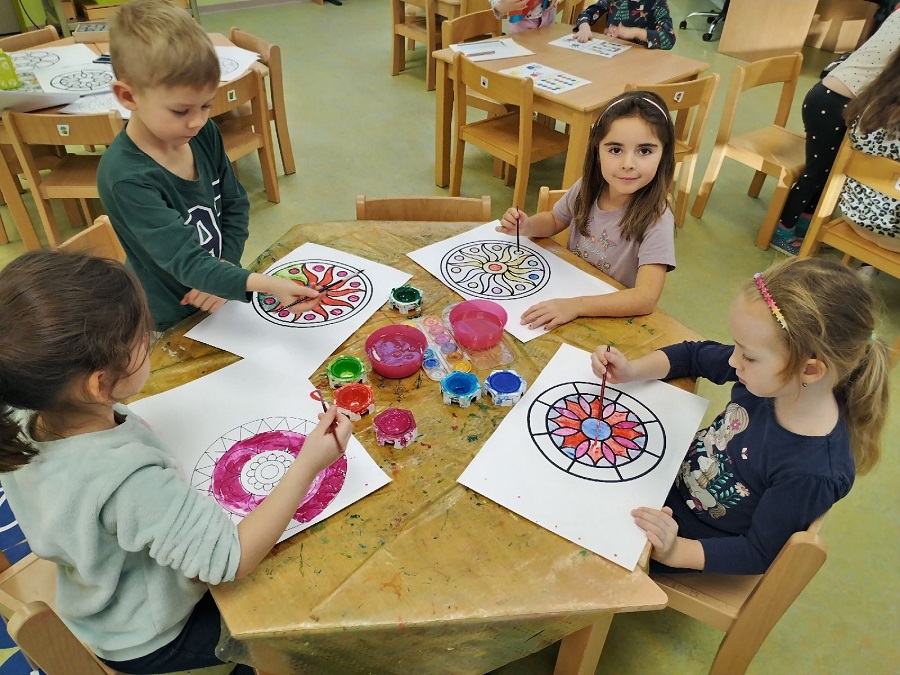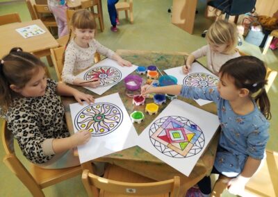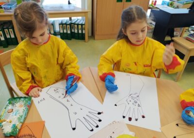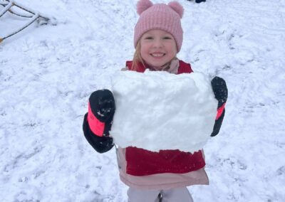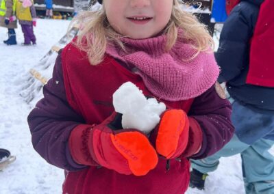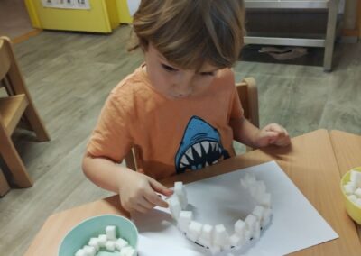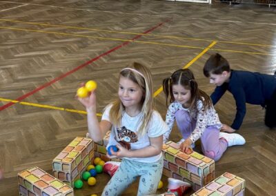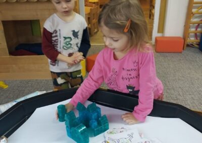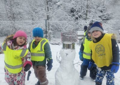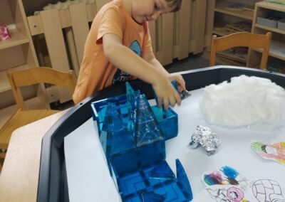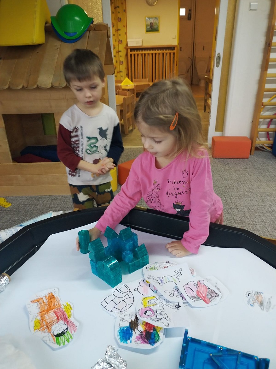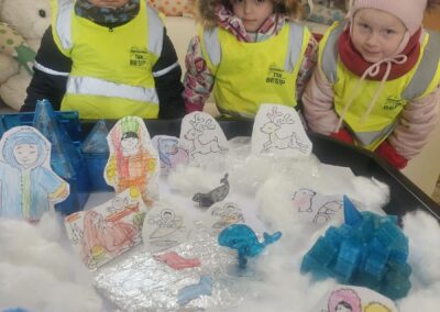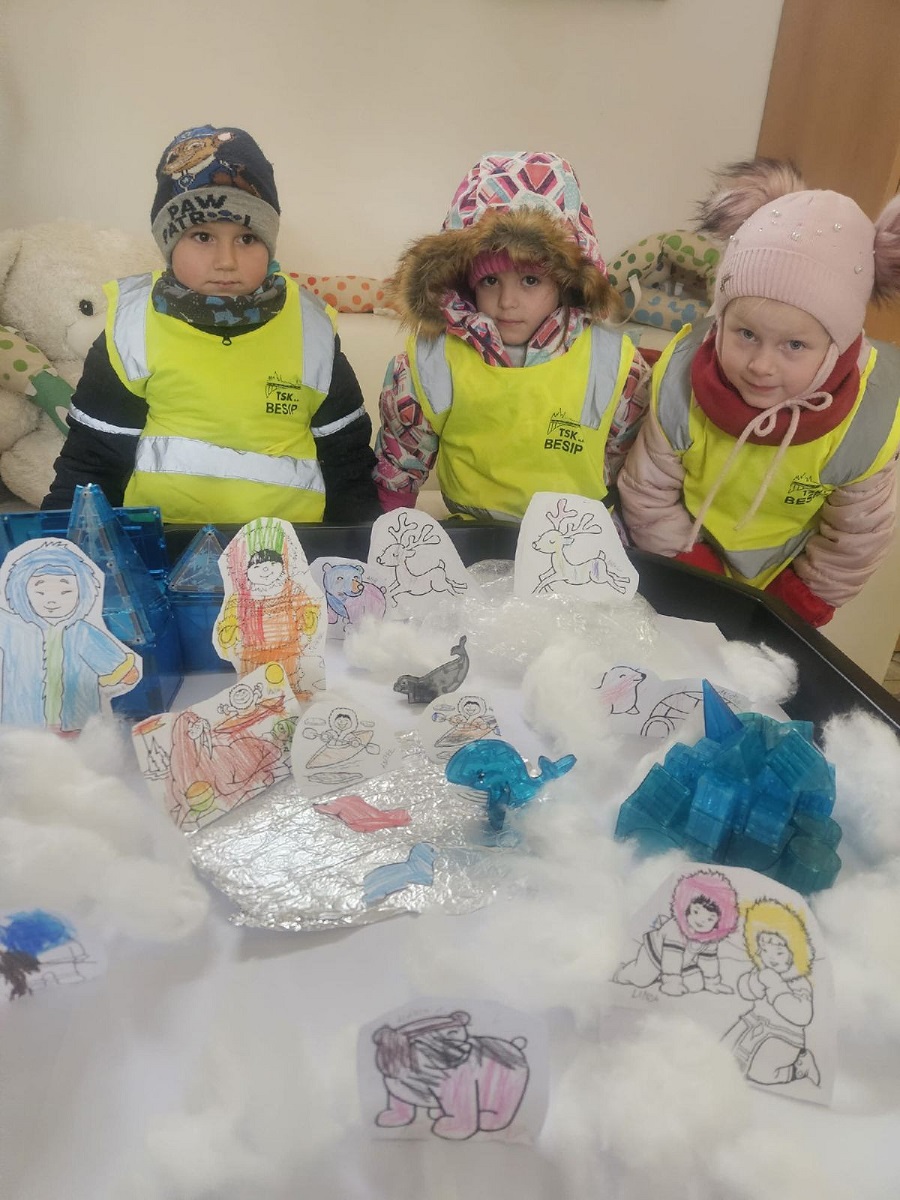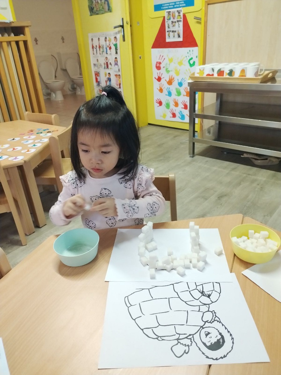 O tom, jak se žije na severním pólu, si povídaly děti ve žlutém vagónku. Zkoušely postavit iglú z kostek cukru i molitanky a společně vyrobily severní pól. A venku na sněhu si pořádně užívaly! 🙂