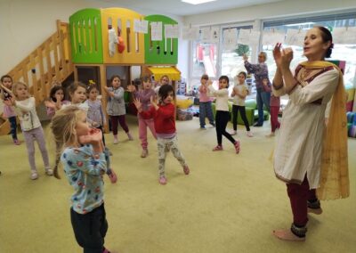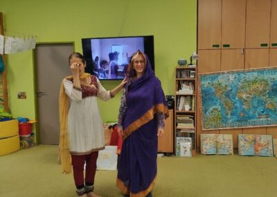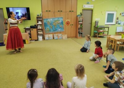 V pondělí 26. ledna přijela za dětmi ze zeleného vagónku lektorka s multikulturním programem o Indii. Děti se dozvěděly hodně zajímavostí, zatančily si indické tance, viděly, jak se obléká sárí a zdobí vlasy.
