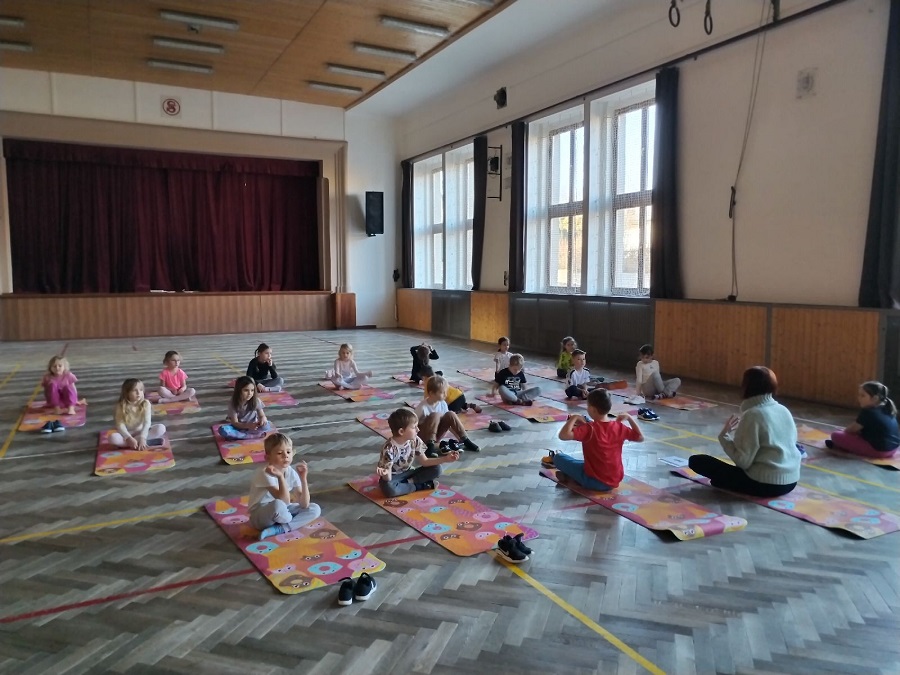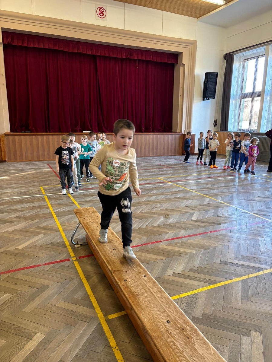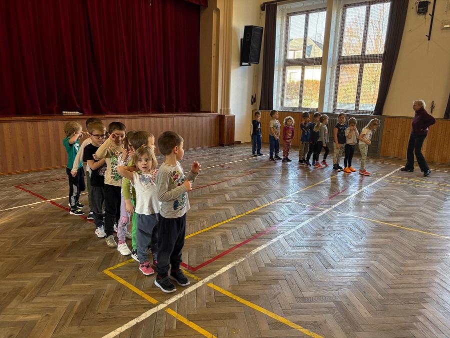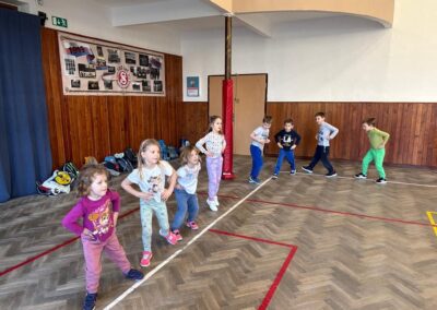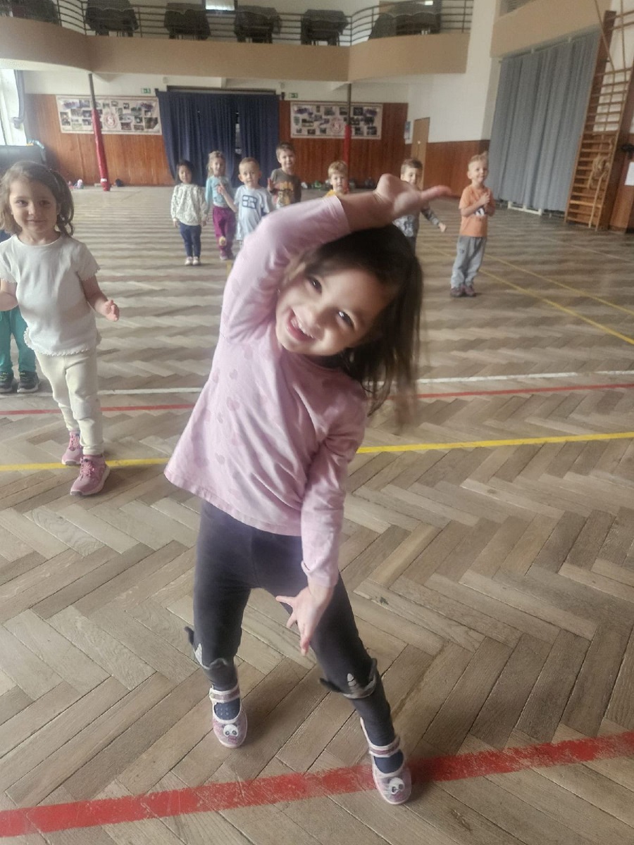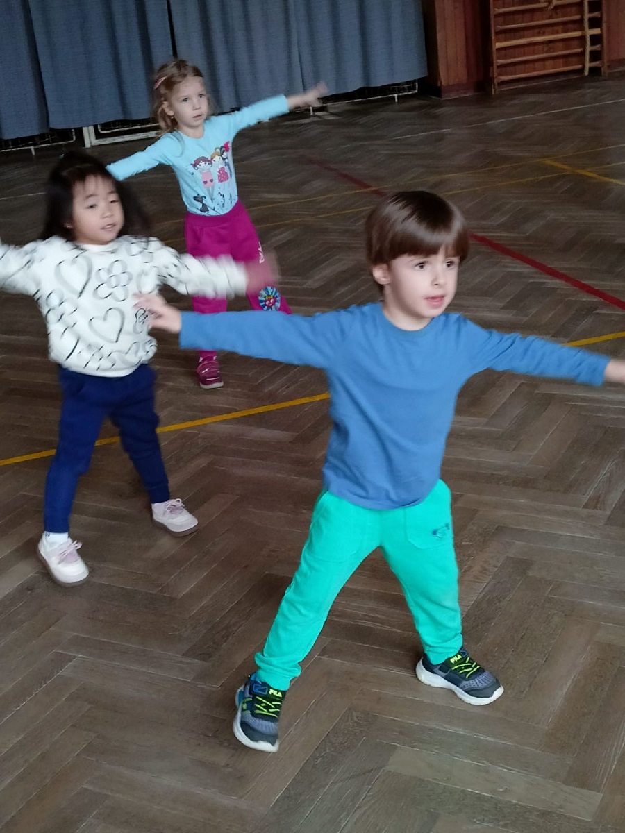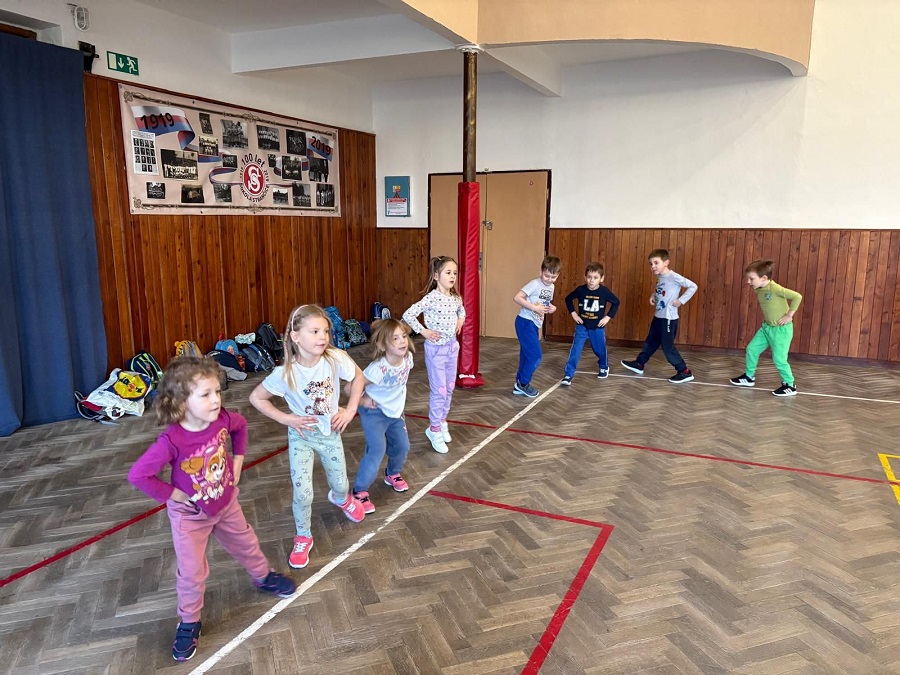 Když je venku velký mráz nebo ledovka a my nemůžeme jít cvičit do sokolovny, užíváme si cvičení ve třídě. Je to prima a moc nás to baví!