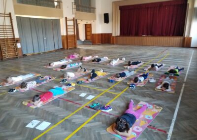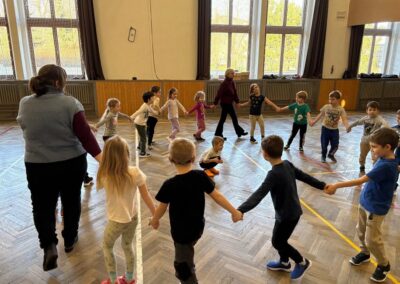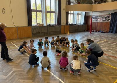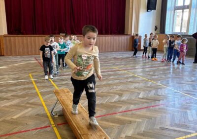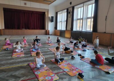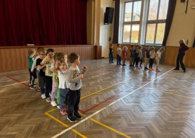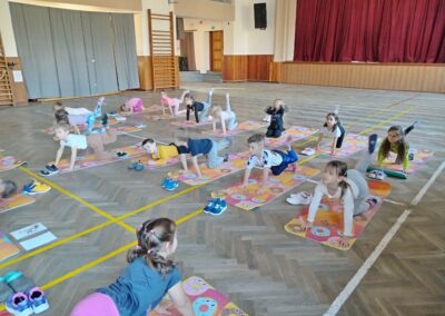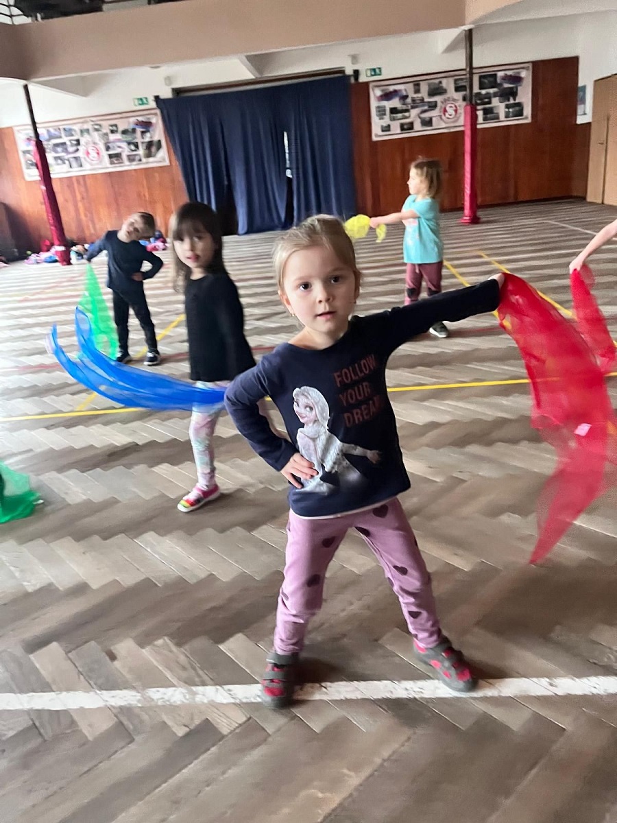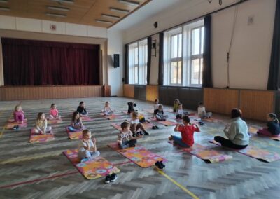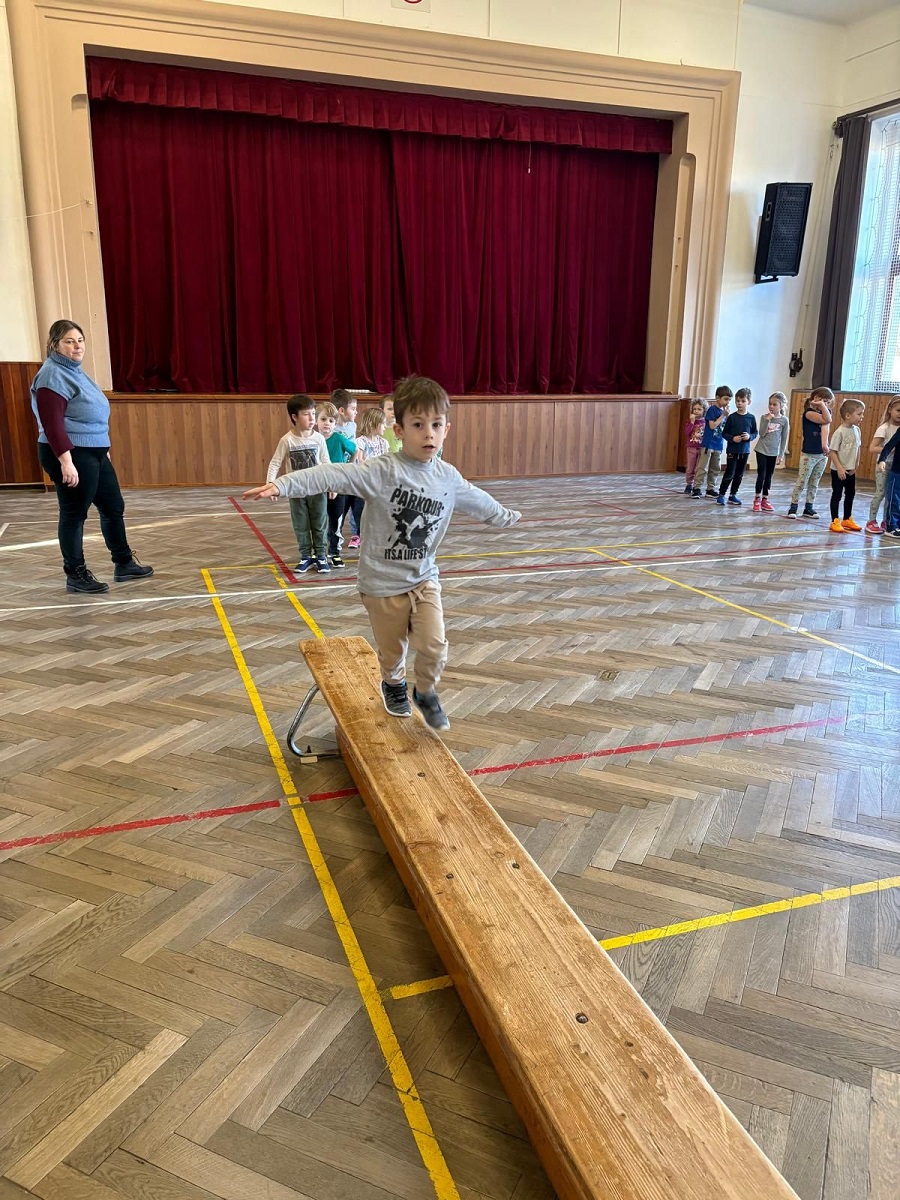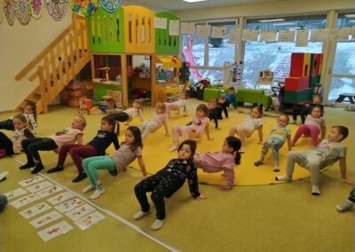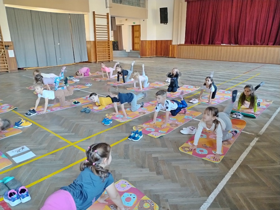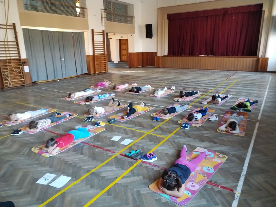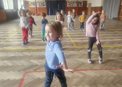 Když je venku velký mráz nebo ledovka a my nemůžeme jít cvičit do sokolovny, užíváme si cvičení ve třídě. Je to prima a moc nás to baví!