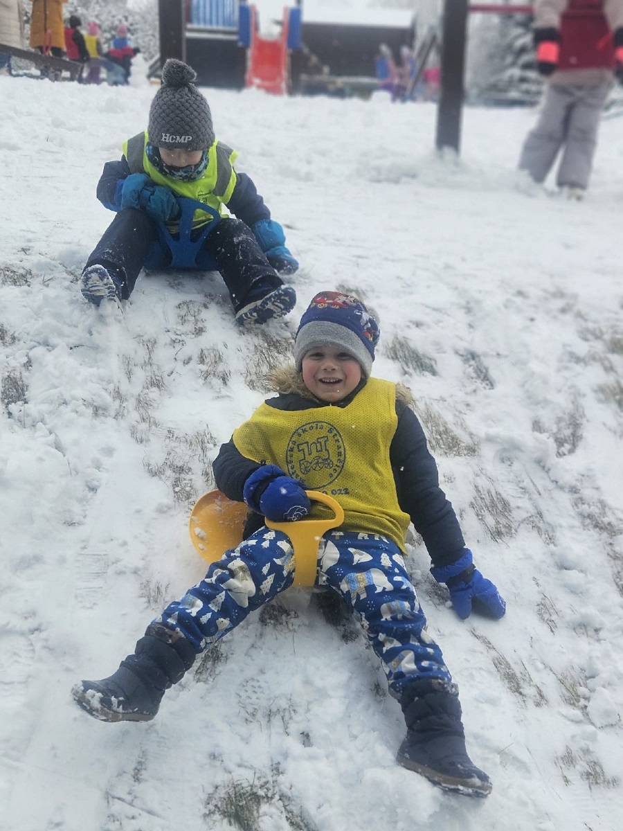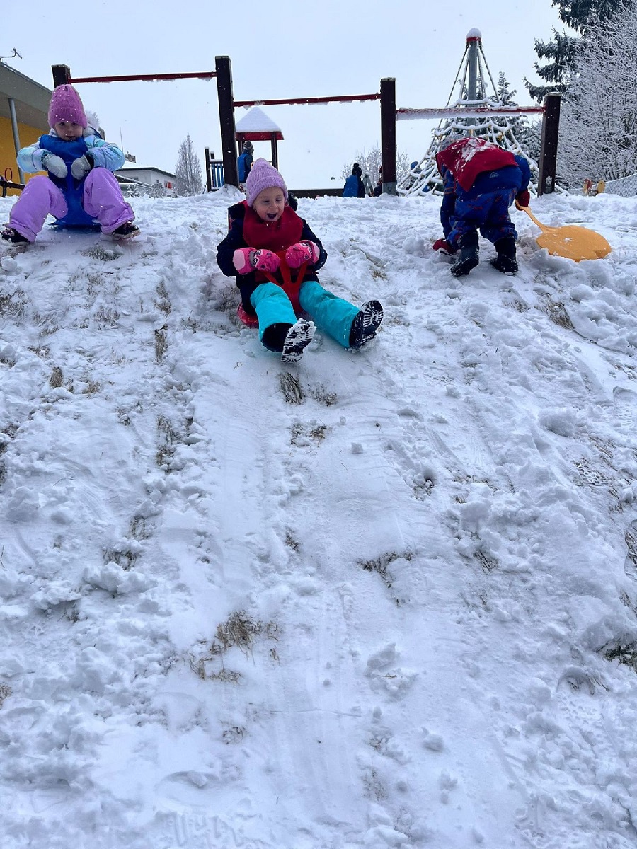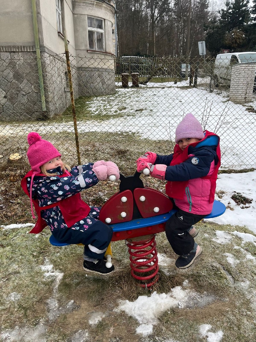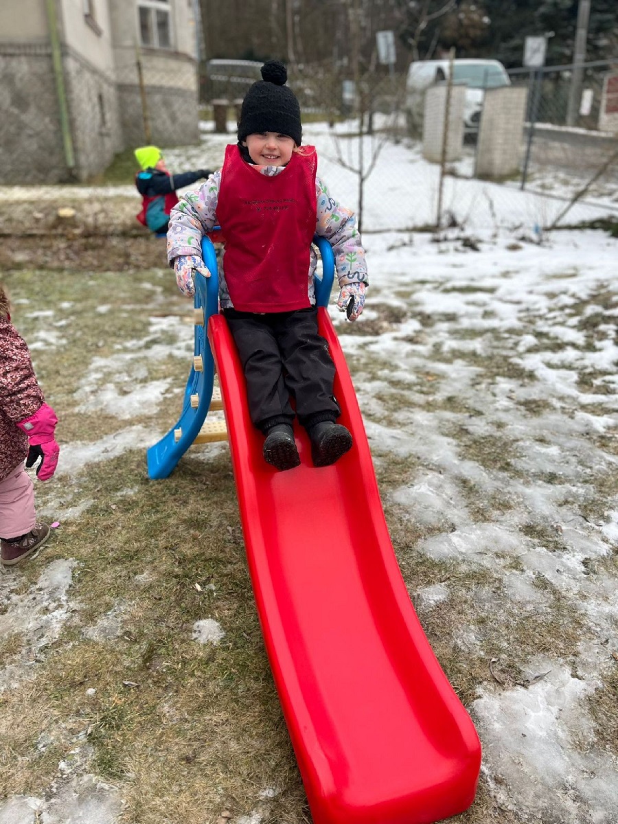 Leden začal sněhovou nadílkou, kterou si děti na zahradě prima užívají.
