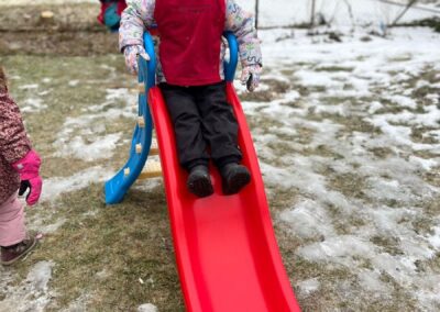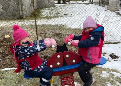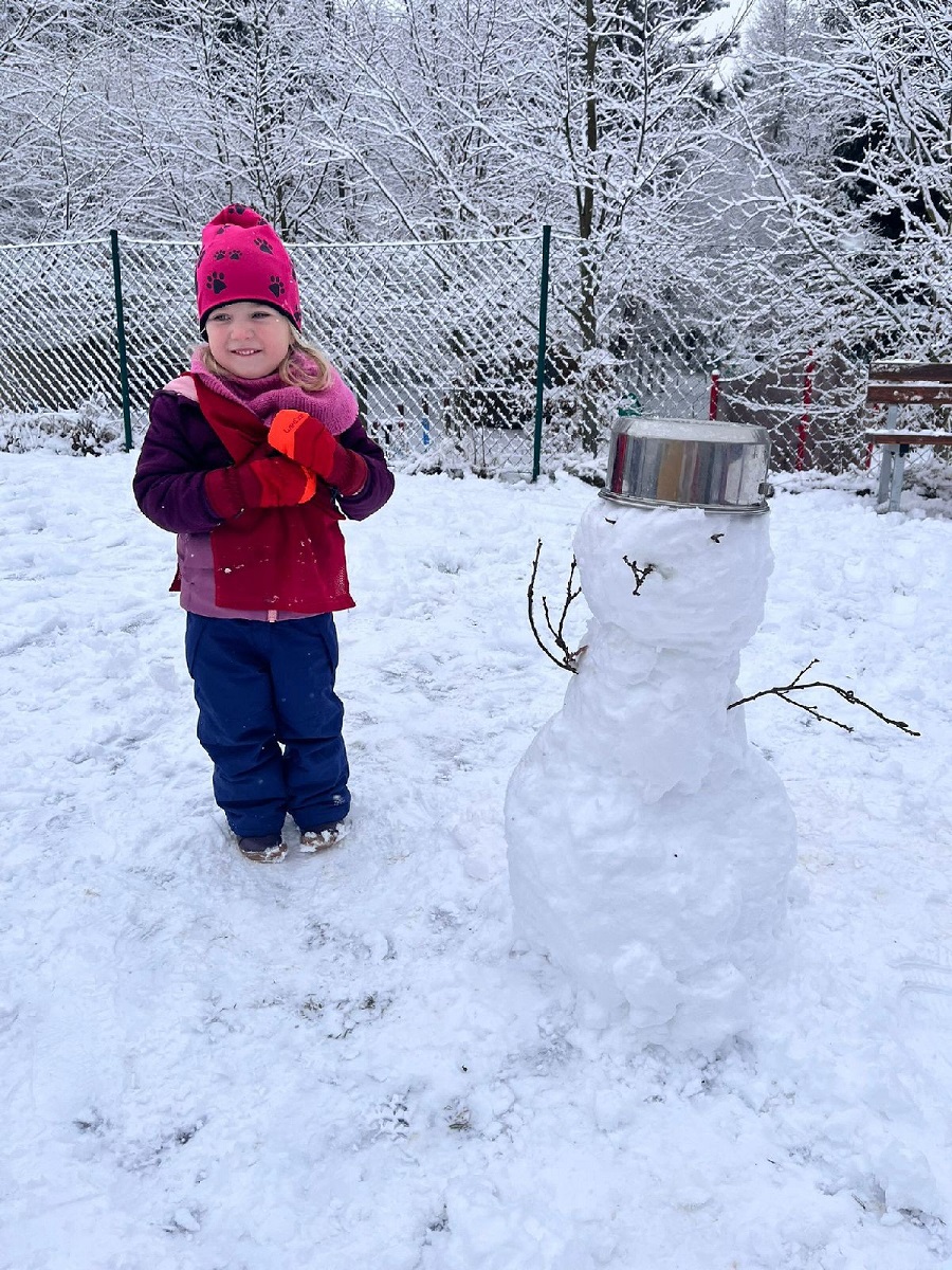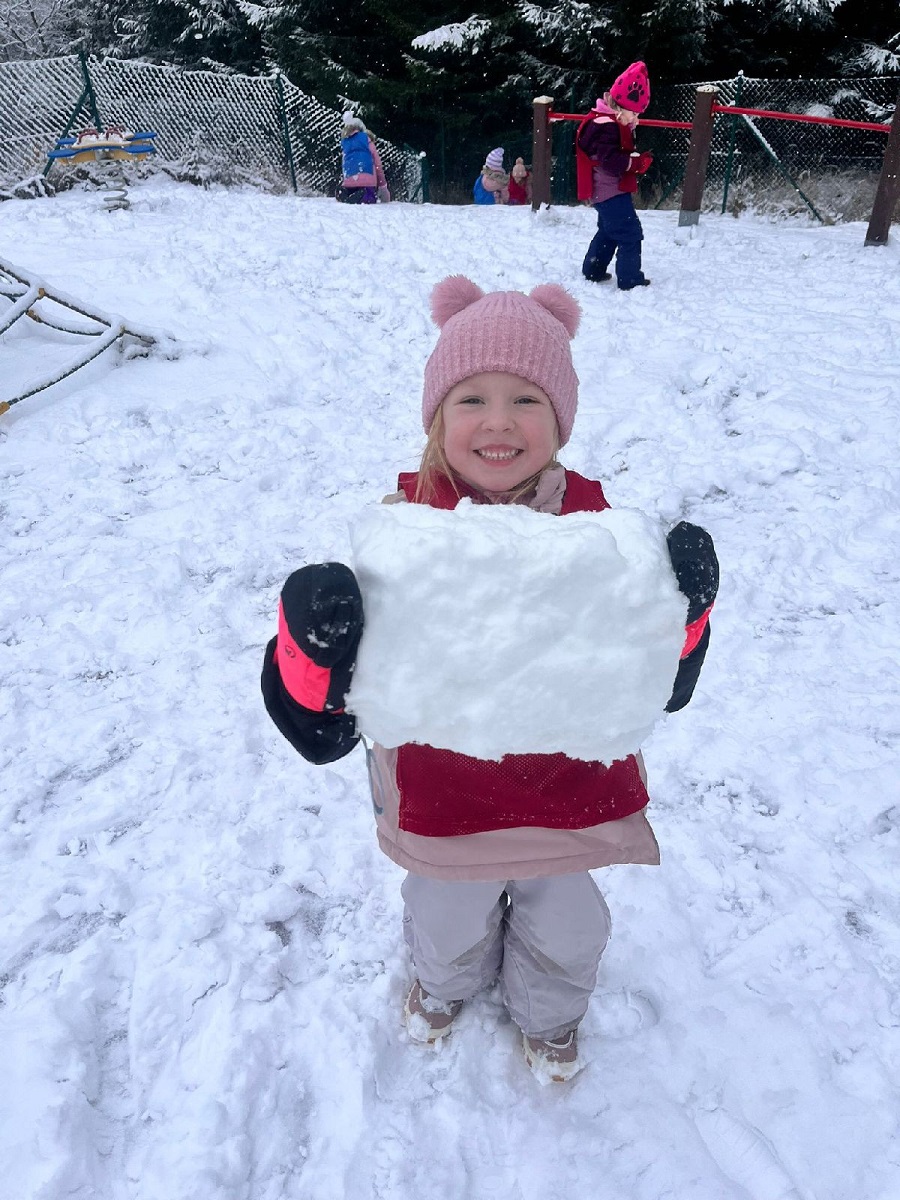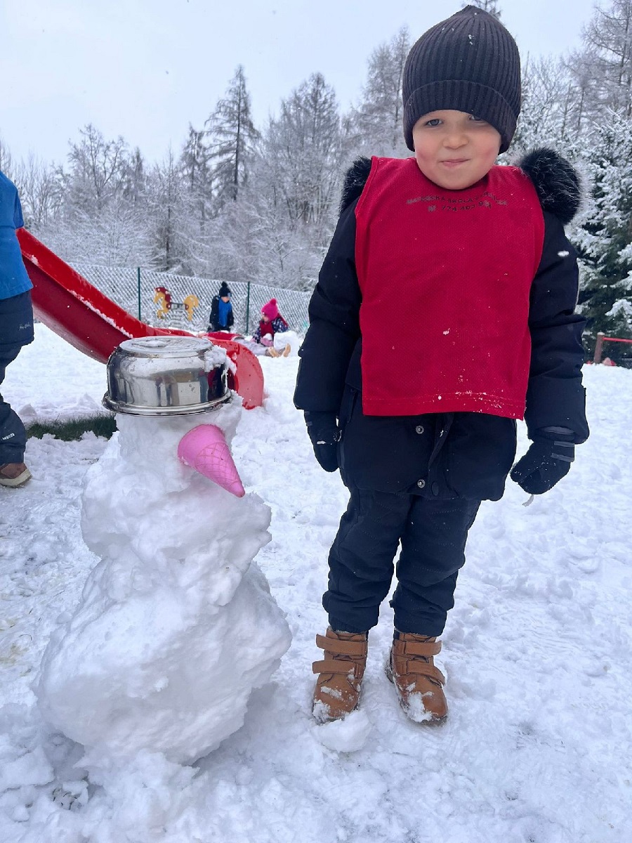 Leden začal sněhovou nadílkou, kterou si děti na zahradě prima užívají.