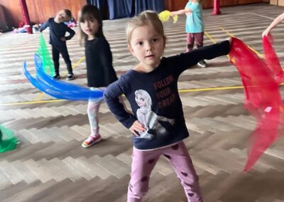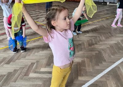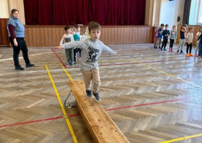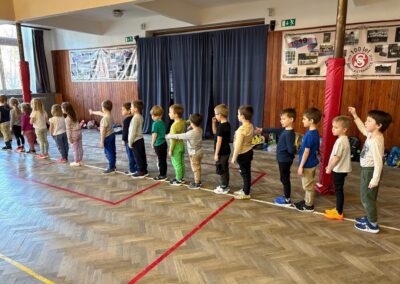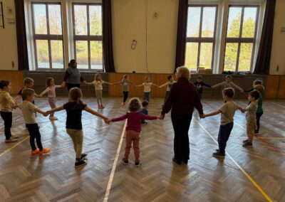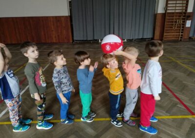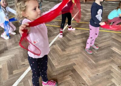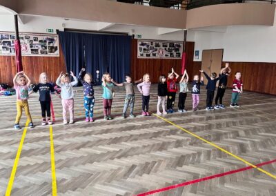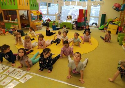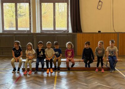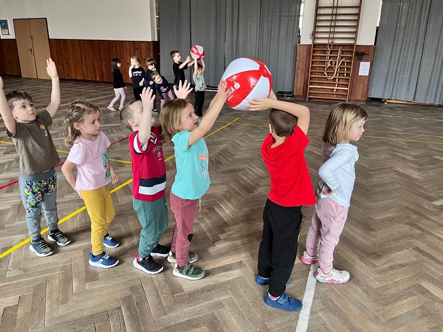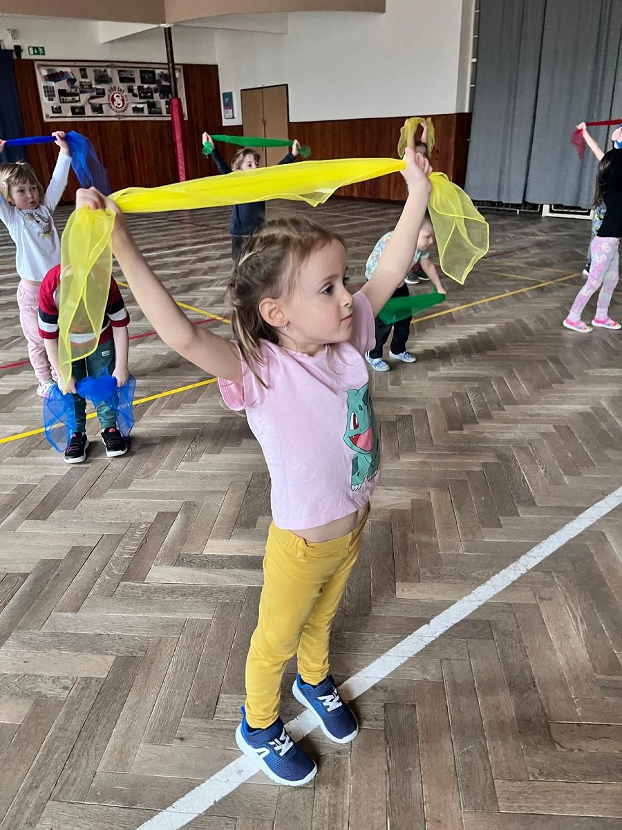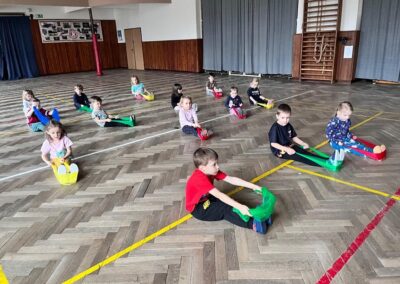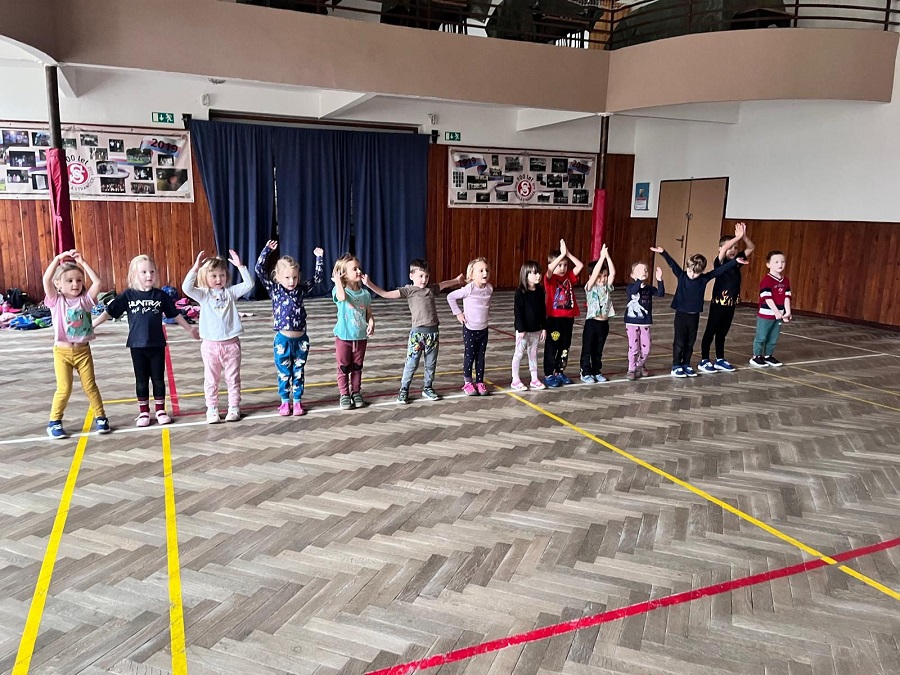 V sokolovně byly v lednu cvičit také děti z červeného a žlutého vagónku. Děti z oranžového, zeleného a modrého chodí na cvičení každý týden.