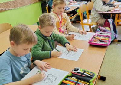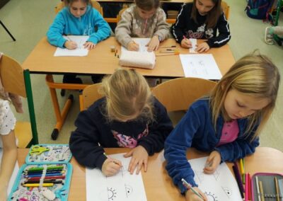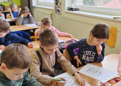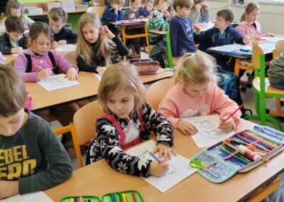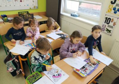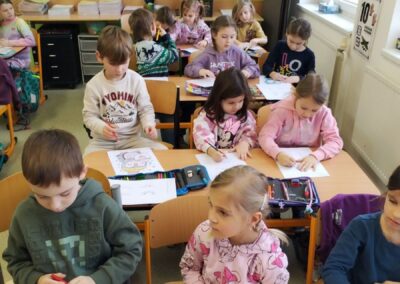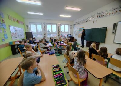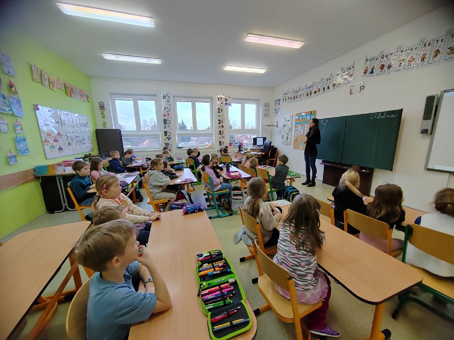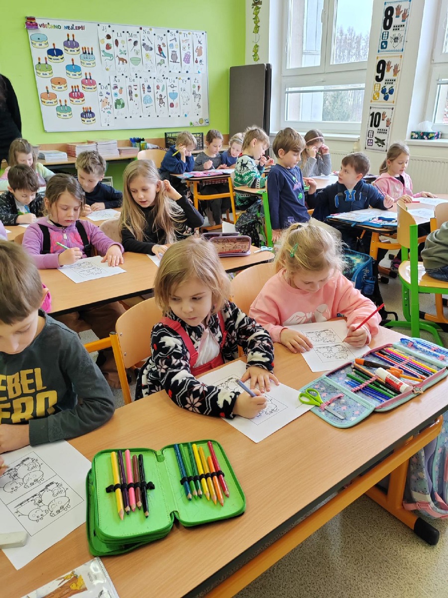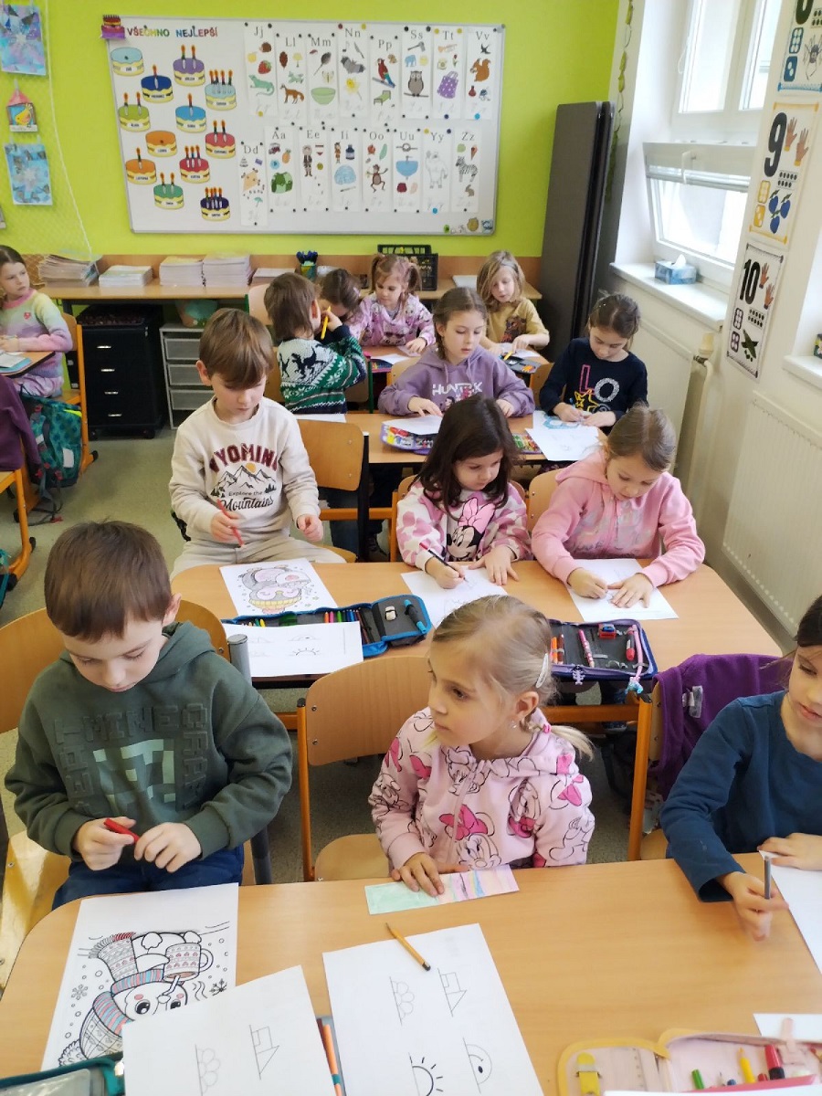V úterý 27. a ve středu 28. ledna se naši předškoláci vydali na návštěvu do prvních tříd základní školy. Užili si, jak se sedí v lavici a jaké to je vypracovat úkoly zadané paní učitelkou. Pro kamarády ze školy děti vyrobily krásné záložky.